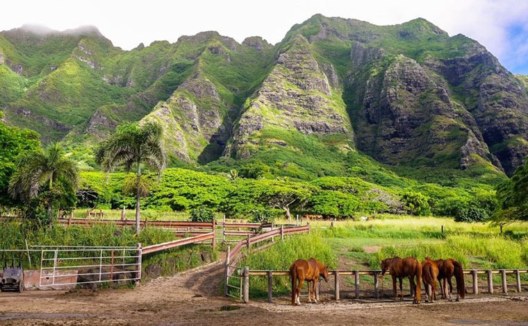 オアフ島の北東に位置するクアロア・ランチは、かつて王族しか立ち入ることが許されなかった聖なる場所。私有地でありながら、壮大な山々の景観や美しいビーチを歩くことができ、映画やCMのロケ地としても知られています。