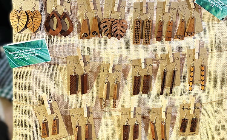 ハワイ固有種のコアウッドを使ったジュエリーブランド「Hiwa Creations(ヒヴァ・クリエーションズ)」。アーティストのニックさんはなんと現職の消防士。ハワイの自然もしっかり守っていきたい…と、家具やウクレレを作った際に出る木の破片や余った部分を使ったジュエリー作りを始めました。耳元で揺れる度にハワイを感じるピアスはとくにおすすめです。