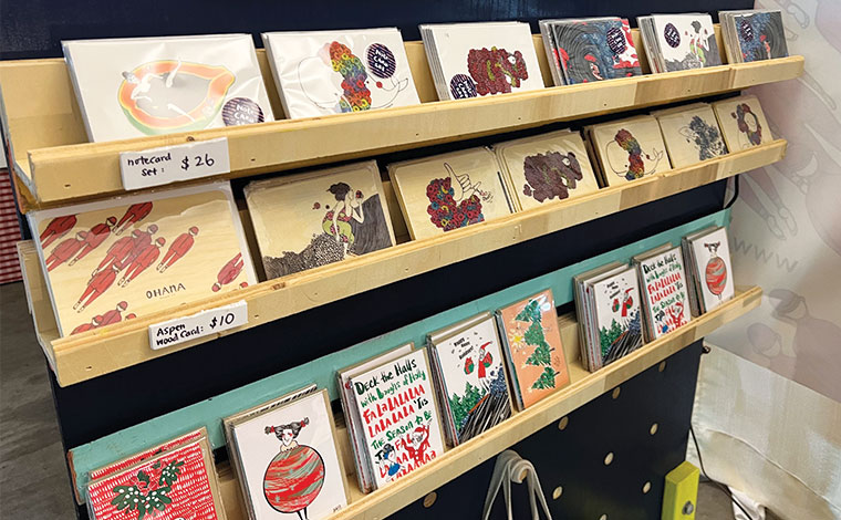 独自の世界観で描かれるアートが話題となり、ハワイの人気ショップの壁画なども数多く手掛けるクリス・ゴトウも登場。ブースには、アートとともにパレオやグリーティングカードなども並び、ここでしか出会えない、特別な「クリスワールド」が展開されていました。