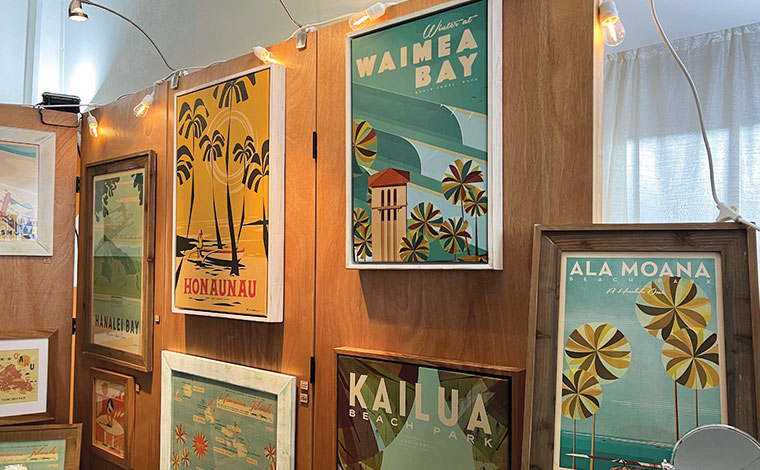 レトロなタッチで、ハワイのさまざまな街を描いた「トラベルマップシリーズ」で知られるニック・カッチャーのブースは、ずらりと並んだトラベルマップアートが圧巻。ニックさんが描くハワイの行ったことのある街、島などのアートを見ると、日本帰国後も楽しかったハワイの想い出が蘇ります。滞在中はもちろん、ご自宅のお部屋にさり気なく飾るのも素敵です。