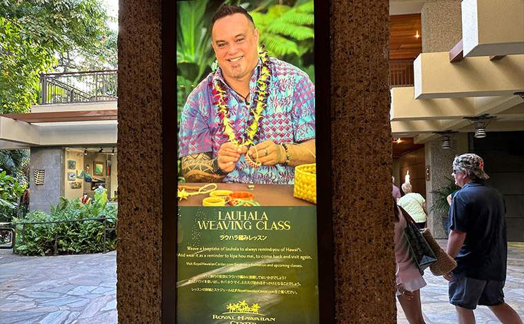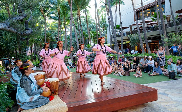 ワイキキの中心にあるショッピングモール「ロイヤル・ハワイアン・センター」では、平日に無料のフラやウクレレ、レイメイキング、ラウハラ編み、お子様向けのケイキフラレッスンを行っています。買い物途中に参加でき、ハワイ文化に気軽に触れることができます。