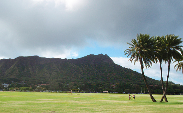 ゆっくり走るには「景色も大事」ということなのか、フルマラソンのコースはアラモアナ公園前をスタートし、カピオラニ公園でフィニッシュ。途中、景観の良い海沿いや、オアフ島最大の観光地ともいえるダイヤモンドヘッドが含まれた風光明媚(ふうこうめいび)なコースです。