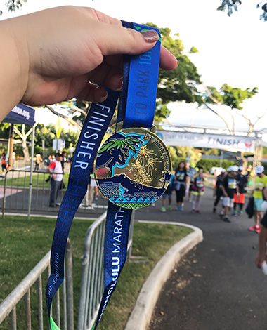 また、走り終わるとメダルの記念品のほか、ハワイの名物スイーツ、マラサダなどがもらえます。こちらは揚げたて、絶品です!