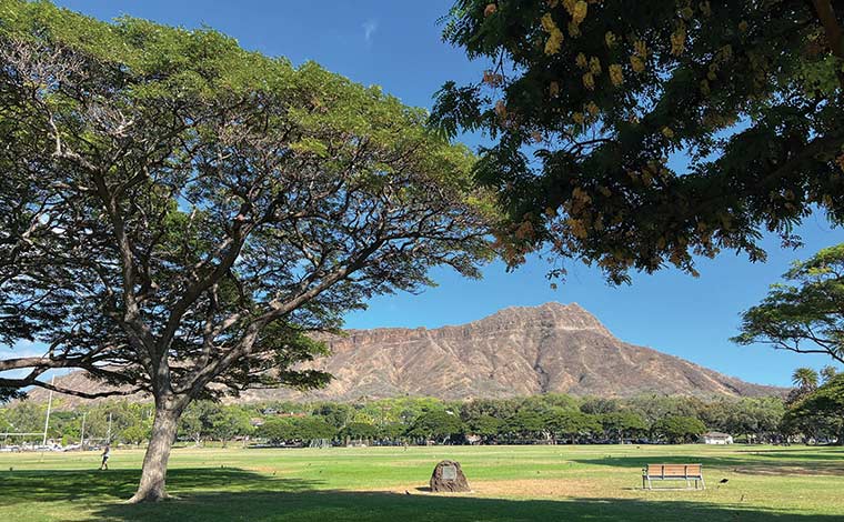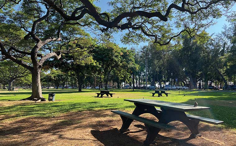 ダイヤモンドヘッドを見渡す広い芝生の公園は、長い間ローカルの憩いの場として愛されてきました。いくつかのテーブルやベンチが設置されているので、ピクニックにも便利!近くのショップでお弁当やプレートランチをテイクアウトして自由に楽しめるので、小さなお子様連れの旅行者にもぴったりです。カピオラニ公園に子供達が集まり、誕生日パーティーを楽しむローカルも多いようです。