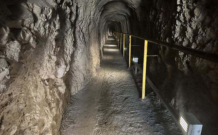 その後、約70メートルある狭く暗いトンネルの中を進みます。