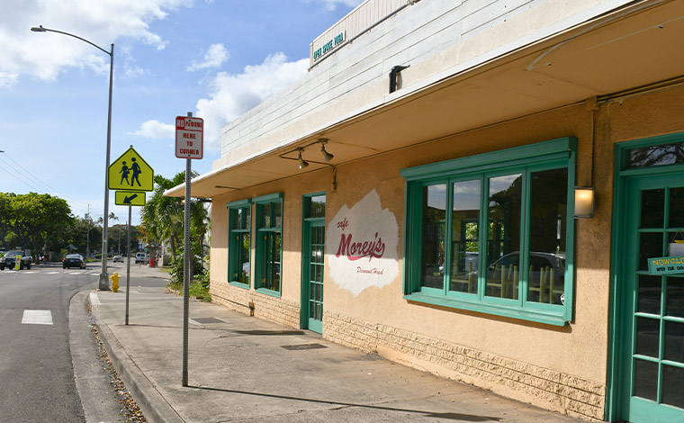 そして、KCCファーマーズマーケット開催日の土曜日以外の場合は、ダイヤモンドヘッドへの行き帰りに立ち寄れるグルメ・ストリートと呼ばれる「モンサラット・アベニュー」がおすすめです。ここには、アサイーボウルで人気の「ボガーツカフェ」をはじめ、サンドイッチやパンケーキなどかわいい盛り付けで人気の「サニーデイズ」、日本人好みのプレートランチが嬉しい「パイオニア・サルーン」。