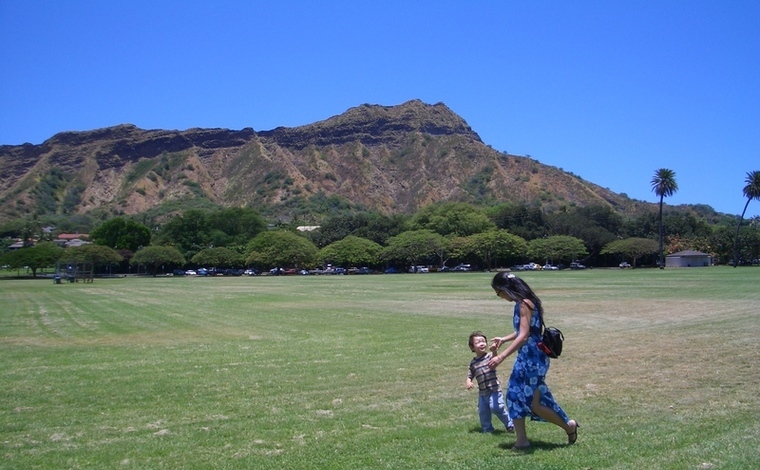 ワイキキから望むハワイの美しきシンボル、ダイヤモンドヘッド。風光明媚なその裾野に広がるカピオラニ公園に隣接し、子供と一緒にのびのび遊んで過ごせるホノルル動物園。