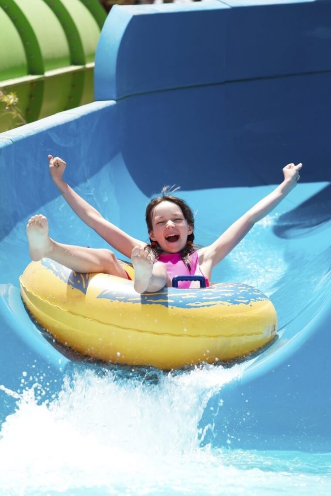 大人は流れるプールで大きな浮き輪に乗り、のんびり流れに身をまかせて。身長が122㎝以上のお子様は、浮き輪に乗ったまま高速で滑り降りるウォータースライドに挑戦など、様々なライドも体験できます。