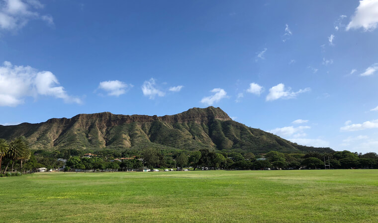 ワイキキの東、カピオラニ公園の目の前に広がるダイヤモンドヘッド。ワイキキからのアクセスも簡単なので、とても人気のあるアクティビティスポットです。
