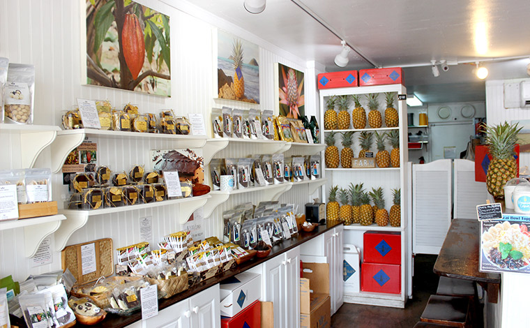 お店には、パイナップルやアップルバナナ、マカダミアナッツなどを使ったお菓子もたくさん並んでいます。
