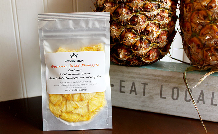 「グルメ・ドライパイナップル(S/$6 L/$11)」は、パッケージに「Contains:Dried Hawaiian Crown Sweet Gold Pineapple and nothing else(原材料:乾燥させたハワイアンクラウン・スイートゴールドパイナップル。ほかには何もなし!)」と明記されていて、無添加にこだわっているのがわかります。