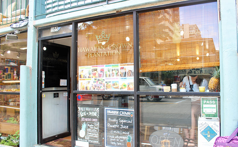 ワイキキのクヒオ通り沿いにある小さなカフェ、ハワイアン・クラウン・プランテーション。