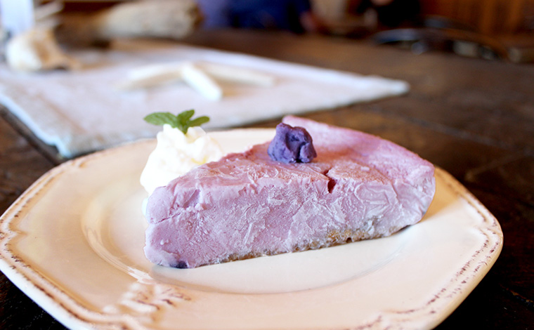 モロカイ島産スイートポテト・チーズケーキ($4.90)は、一度焼き上げたチーズケーキを冷やして作る独特の製法で、舌触りが絶品です。