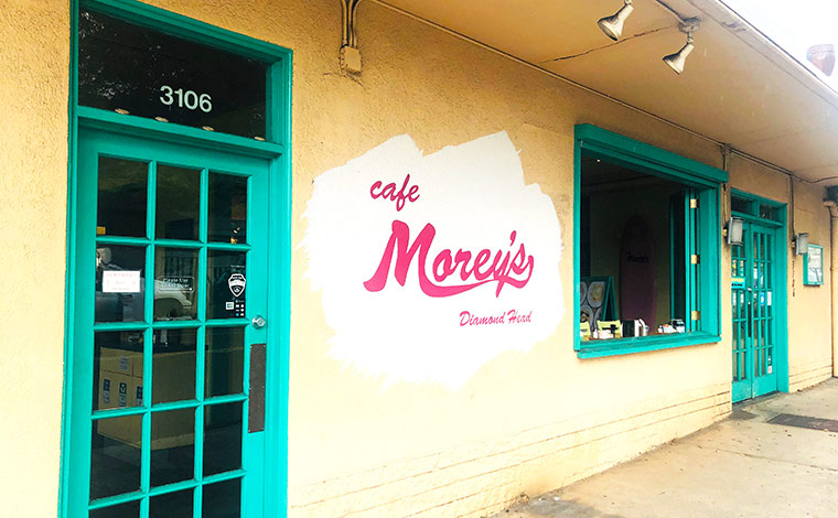 モンサラット通りに一際目立つ外壁が印象的なCafe Morey’s(カフェ・モリーズ)。内装の色合いやウォールアートも可愛いくて、つい写真に収めたくなります。
