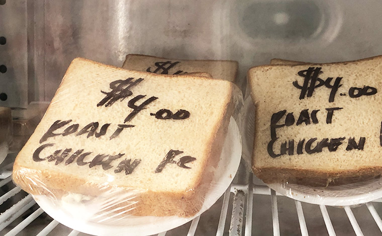 手作りのサンドイッチも、朝食にぴったり。飾り気のない、本当にシンプルなサンドイッチ。ラップにマジックで手書きされた文字が、なんとも温かくどこか懐かしい雰囲気です。紙皿ごと包まれているのが高橋流。この感じがローカルや旅慣れたファンたちが何度も通う、魅力なのだと思います。