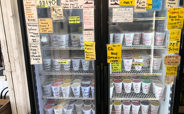 アイスクリームの種類は数え切れないほど豊富。マンゴーシャーベットやコナコーヒーアイスクリームなどがとくに人気。冷蔵庫を開けた状態でどのフレーバーにしようか迷っていると、中の温度が上がってしまうので気をつけましょう。
