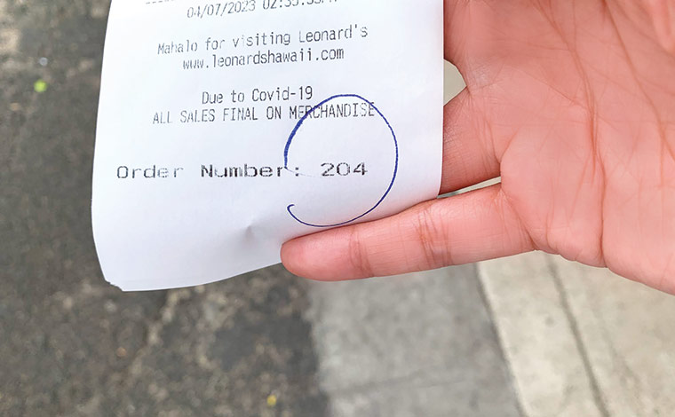 3)注文してからマラサダを揚げるので、レジでお支払いを済ませたら一旦お店の外へ。
