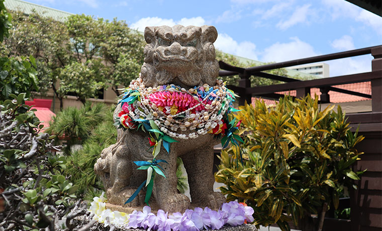 ザ ピッグ&レディから15分ほど歩くとハワイ出雲大社があります。ハワイらしいレイをかけた狛犬が迎えてくれます。こちらは日系移民に神道を広める目的で1906年に建てられました。縁結びの神様として知れている島根県の出雲大社の分院である「ハワイ出雲大社」。お正月に初詣に訪れる人も多いそう。ローカルや観光客にも古くから愛されている神社です。もちろん御朱印やお守りもいただくことができます。
