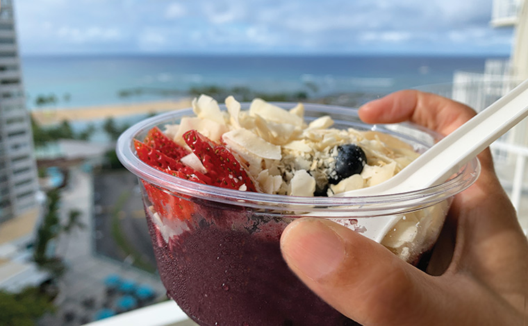 濃厚なアサイーは、グラノーラやフルーツと一緒に食べると本当においしい。テイクアウトしたら、リゾートのバルコニーでワイキキの海を眺めて、朝食にアサイーボウルはいかがでしょう。優しい朝の風を感じながら食べるアサイーボウルは、きっとハワイでの素敵な思い出になるでしょう。