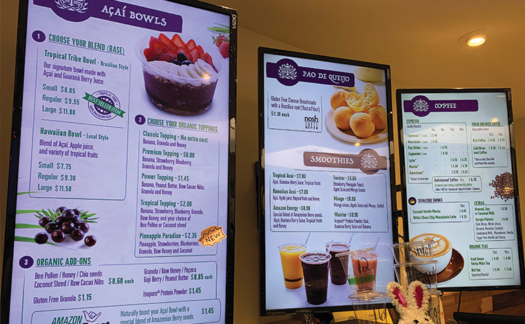 アサイーボウルは全6種類。定番のオリジナルアサイーボウル(24oz 15.95ドル)の他、ハウスメイドのオリジナルリリコイハニーを使用したリリコイアサイーボウル(24oz 15.95ドル)、たっぷり入ったフルーツの上にカリっとした食感が楽しめるワイルア産のカカオニブとハワイ島の生はちみつがかかったカカオモアナアサイーボウル(24oz 15.95ドル)など、様々なフレーバーのアサイーボウルをお楽しみいただけます。