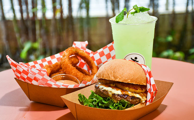 「ハイ・バーガー」では、バラエティ豊かな10種類のハンバーガーが揃っています。バジルペストバーガー(18.5ドル)やベーコンバーガー(18.5ドル)、南国の風味を感じるパイナップルバーガー(17.5ドル)に加え、ハワイ名物のカルアポークを使ったバーガー(14.5ドル)やピリッとスパイシーなホットチキンバーガー(17ドル)など、ユニークなハンバーガーもあります。