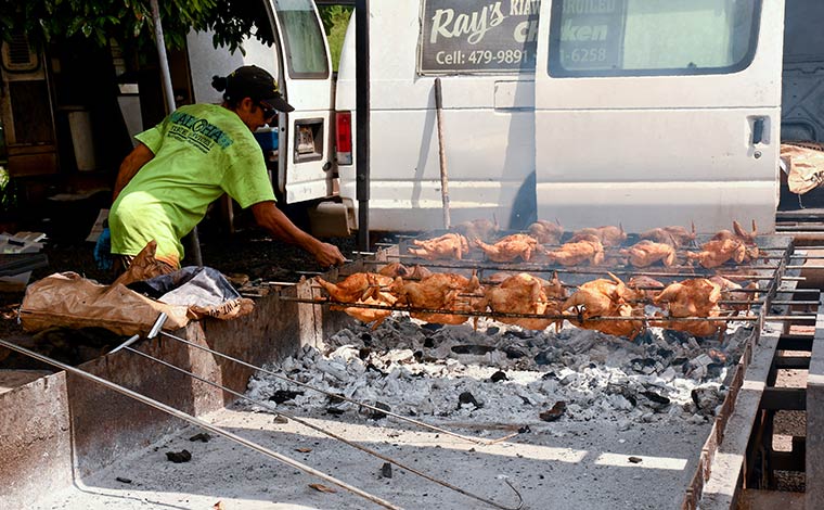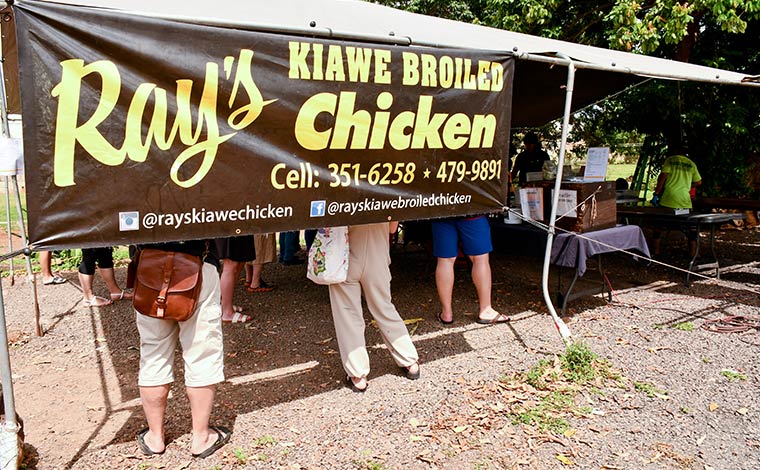 オアフ島ハレイワで、週末限定の名物レイズの炭火焼きチキン