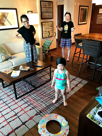 「ハワイは味付けが基本的に濃いので、義母が薄味の調味料をたくさん持ってきてくれたんです。これがとっても重宝しました。また、万が一、娘が体調を崩して部屋で長時間過ごすことになっても飽きないようにお気に入りのDVDを持参したんです。広いリビングでDVDを観ながら歌う娘の姿を、義母がうれしそうに眺めていたのが印象に残っています」