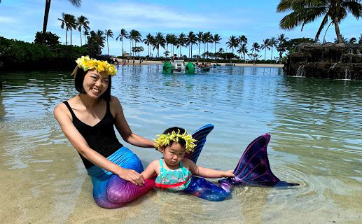「今回のバケーションでも、娘と一緒に人魚のコスチュームを身に着け、ラグーンで遊ぶ体験プログラムに参加してみました。訪れるたびに新しい企画が用意されていて、毎回フレッシュな気持ちでバケーションを楽しめるところがいいですね。もちろん、親子の時間を心から楽しむには安心して過ごせる環境こそが大切。ママにとっては心強い限りです」