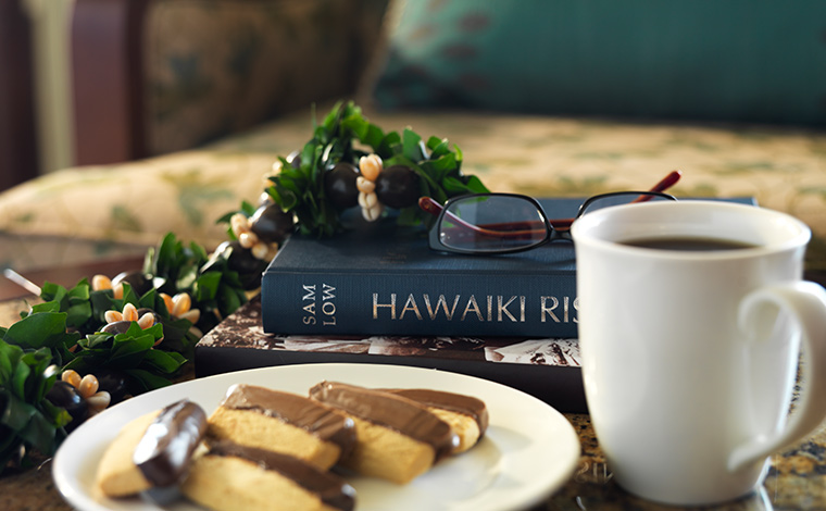 ワイコロアコーヒーに感謝を込めて。なぜならば部屋の階段を下ったところにあるテラスで、毎朝コナコーヒーを飲むのが至福のひとときだったからです。