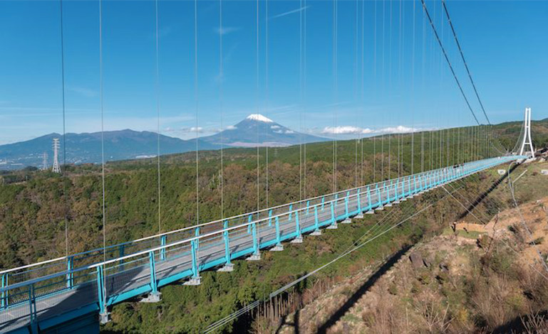 また3日目は三島エリアへ。全長400メートルにおよぶ日本一長い歩行者専用吊橋「三島スカイウォーク」では、果敢にもロングジップスライド(往復560メートルを駆け抜けるジップライン)に挑戦。富士山や駿河湾を望む大パノラマを堪能されました。