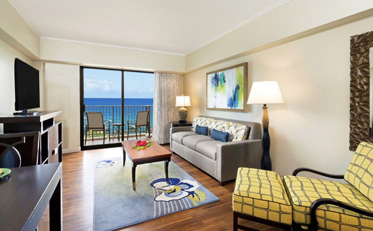 「1ベッドルームながらリビングや寝室が広々としていてびっくりしました。インテリアも落ち着いた雰囲気で、大変居心地がよかったのを思い出します。また、カリアタワーはタイムシェア専用フロアが12階から18階までとかなり上層階にあるので、ラナイからの眺めも素晴らしかったんですよ」