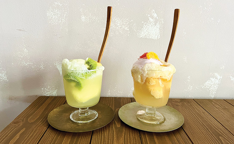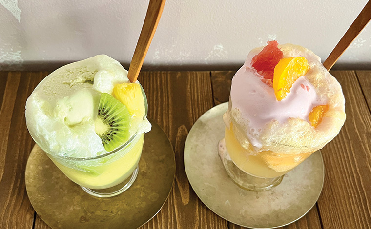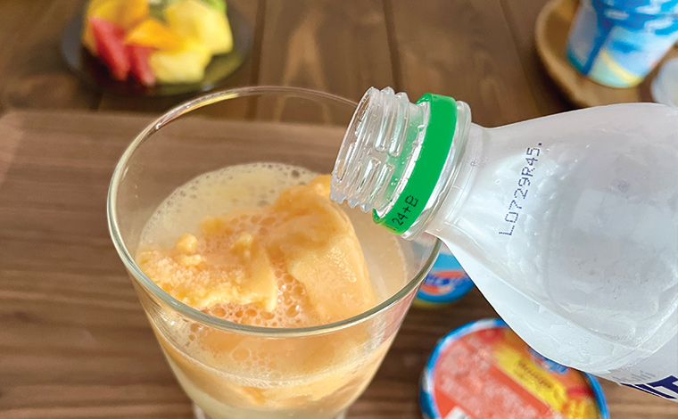 2品目はシャーベットで作るフルーツソーダにアイスを浮かべる、ちょっと贅沢なクリームソーダです。バリエーションはさまざまですから、ファミリーやカップルでセンスを競うのも盛り上がりそう! 本部町の市場やスーパーなど近隣のお店で沖縄ならではのフレッシュなパイナップル、キウイ、マンゴーなどの南国フルーツも用意すれば、滞在中のお部屋でカフェ気分も味わえる大満足な仕上がりになります。