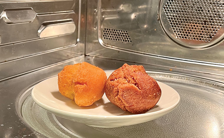 揚げ立てがあれば最高ですが、袋入りの市販品も冷凍保存できるので、ストックを上手に温めてアイスをたっぷり添え、熱々とひんやりのコントラストを楽しみましょう!