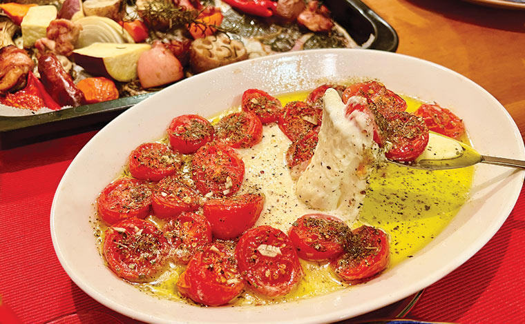 2品目は、冬場でも甘みなどが安定しているミニトマトを使います。サラダではなく、高温で短時間焼き上げることでトマトの風味がギュッと凝縮するコンフィです。ドライハーブで香り良く、子どもも大好きなモッツァレラチーズも一緒に焼きましょう。旨味がしみ出したオイルにパンを浸していただくと、ワインが進んで止まりません!
