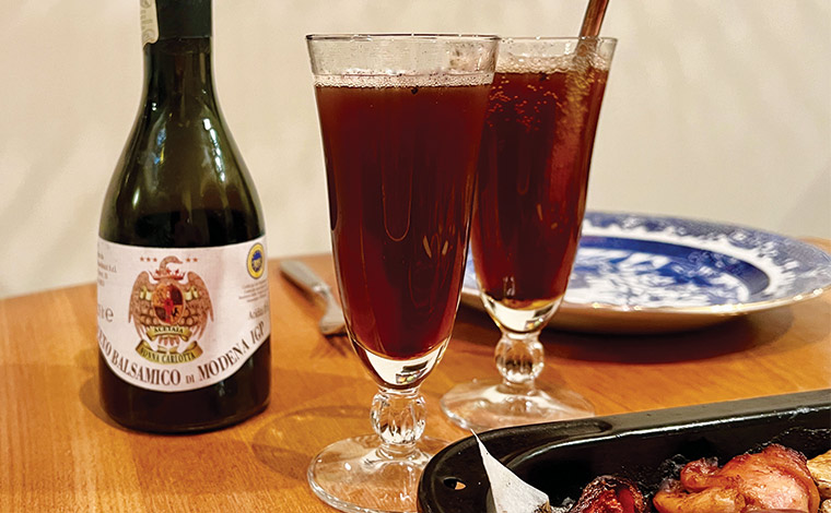 ノンアルコールなら、ほんの少しのバルサミコ酢とはちみつを冷たい炭酸水で割ったバルサミコソーダを。現地のフルーツヴィネガーをソーダ割りにするのも素敵です!