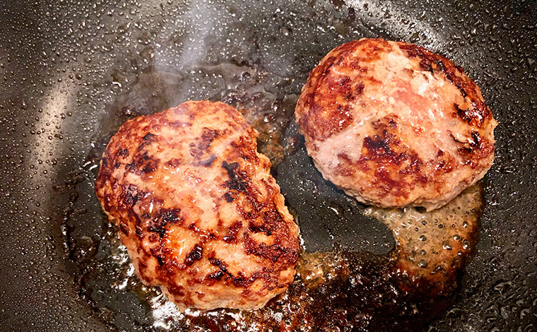 とろりとしたソースを、ごはんにたっぷりとからめて食べるおいしさときたら! 身近な調味料だけで仕上げるために、ハンバーグのたねにきのこを混ぜて、うまみの濃い肉汁を作りましょう。