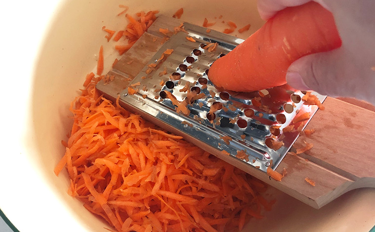 チーズおろしでも代用できますので、独特のやわらかい食感と、蒸し焼きにしたにんじんの甘みを味わってみてください。