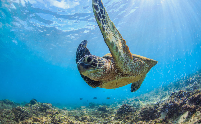 ツアーは計5時間ほど。行程の目玉は、海底で固まった溶岩がアーチを形成しているタートルアーチでのシュノーケリングです。ハワイで見られるアオウミガメを含めて、ウミガメは絶滅危惧種に指定されているので、ガイドさんの指示に従って、ウミガメとの出会いを楽しんでください。