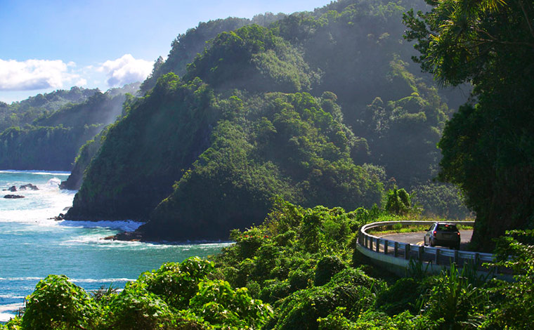 その間を縫って走るハナ・ハイウェイは、整備が行き届いた安全な道ですが、ヘアピンカーブ連続の手ごわい道でもあり、カフルイ空港からハナへは約84㎞と大した距離ではないのに、かかる時間は片道2~4時間ほど。