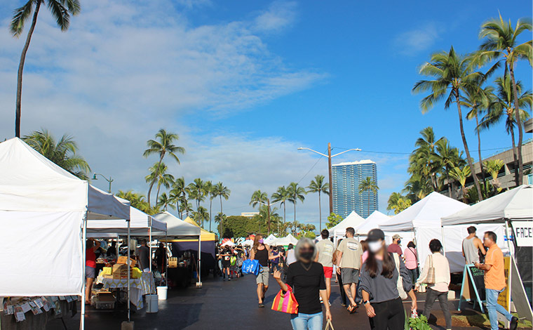 コロナ禍において、ここ楽園ハワイでもビジネスや人々の生活が大きく変化しました。 そんな中、話題を集めているのが「ファーマーズ・マーケット」です。新鮮な野菜やフルーツなどを販売するローカル農園のブースはもちろん、現在は通常営業が難しいレストランやショップなどが数多く出店して賑わっています。 今回は「今、できること」に前向きに取り組むハワイの人々の様子を、お届けします。
