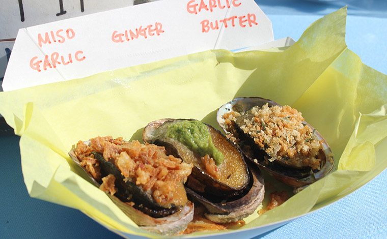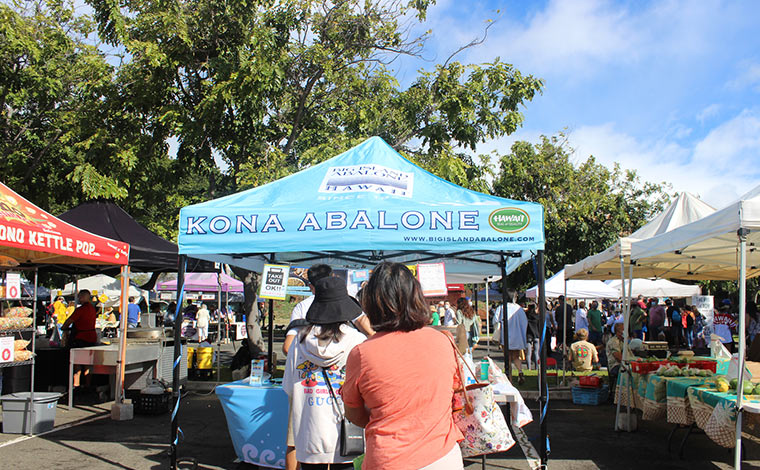 数あるテントの中でひときわ目を引く行列ができていたのは、ハワイ島産のあわびを扱う「コナ・アバロニ」です。
