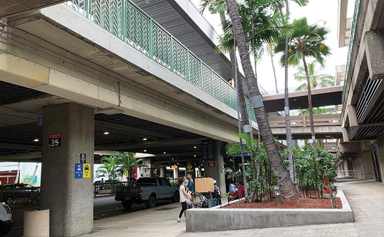 オアフ島の玄関口ホノルル空港(正式名称:ダニエル・K・イノウエ国際空港)は、ワイキキから車で30~40分ほどの距離。空港からは、電車などの公共交通機関がないためタクシーやシャトルバスでの移動となります。