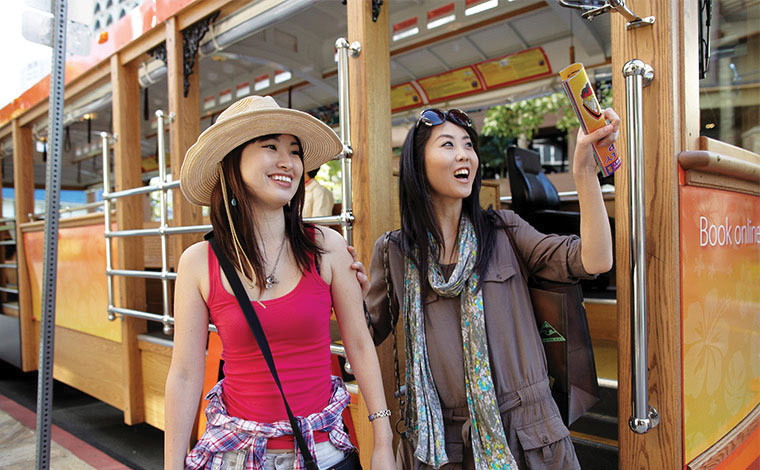 ワイキキを観光するなら、トロリーバスを使ってみましょう。ワイキキはレアレアトロリーやワイキキトロリーといったトロリーバスが充実しており、ワイキキ内を効率よく回ることができます。窓が無いタイプのトロリーは、ハワイの爽やかな風を肌で感じながら、ワイキキの街を楽しむことができます。ただ乗っているだけでもとても楽しいので、滞在中一回は乗ってみることをおすすめします。またトロリー乗車前にルートマップも入手しておくとよいでしょう。