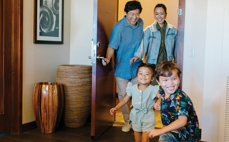 ホテルで5人以上の宿泊の場合、広いお部屋やコネクティングルームが予約できなければ、お部屋が分かれたり、エキストラベッドを入れてお部屋が狭くなることも。でも、2ベッドルームあるコンドミニアムスタイルのお部屋なら、部屋を分けることなく快適にお過ごしいただけます。各ベッドルームは区切られており、お互いのプライバシーも保たれるため、三世代旅行にも最適です。