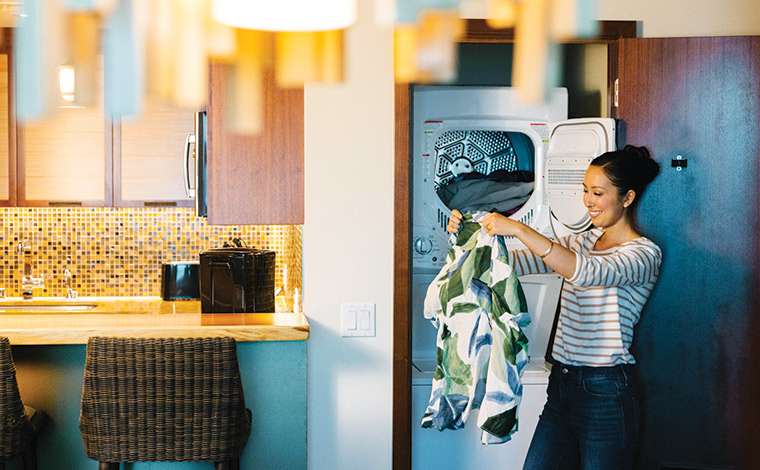 またザ・グランドアイランダー・ヒルトングランドバケーションズクのすべてのお部屋には、洗濯乾燥機も完備しています。お帰りの際は洗濯、乾燥して帰ってくださいね。