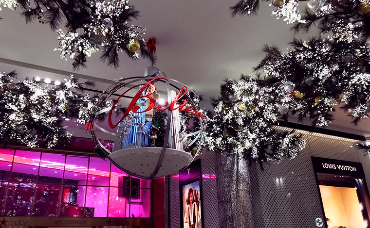 街の散策は34丁目にあるメイシーズからスタート。1858年創業老舗デパートのクリスマスデコレーションは、ショーウィンドウだけでなく店内もクリスマス一色に染まります。