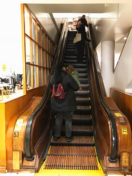 当時を偲ばせる古い木のステップでできたエスカレーターが残されています。ゴトゴト音をたてて動くエスカレーターを見るだけでも、レトロな雰囲気に浸ることができます。