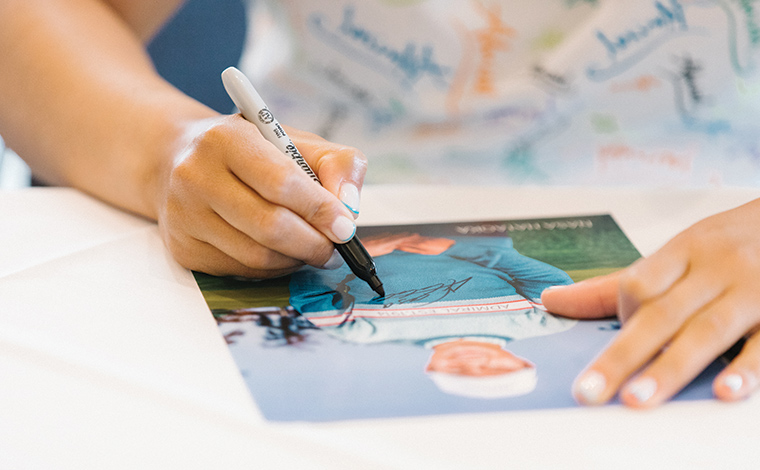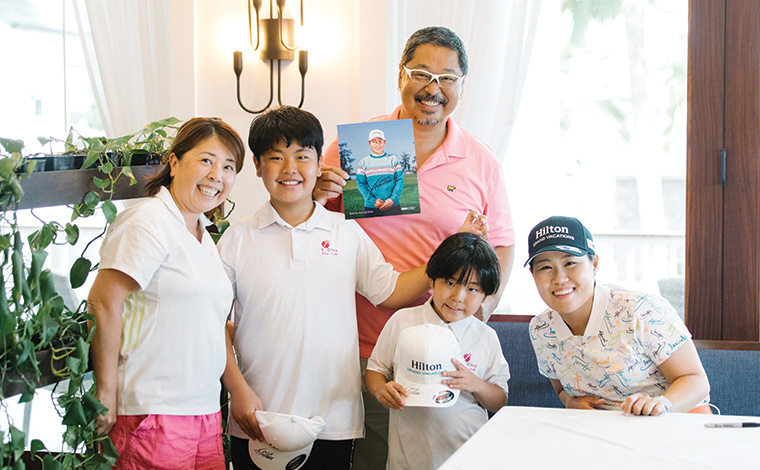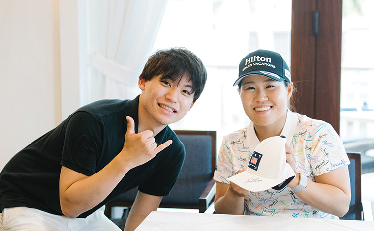 クリニック終了後は、クラブハウスへ移動し、畑岡選手のサイン会を開催しました。参加者全員に、ヒルトングランドバケーションズのゴルフキャップまたは畑岡選手の写真に畑岡選手からサインをいただきました。