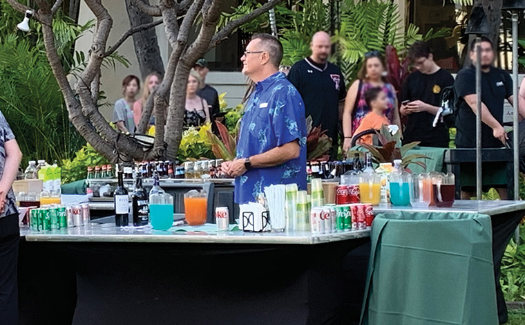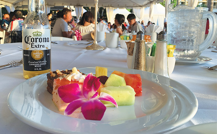 いよいよディナータイムです。ビール、トロピカルカクテル、ソフトドリンクなどの飲み物は、ドリンクコーナーで受け取ります。もちろんハワイのコナビールも。