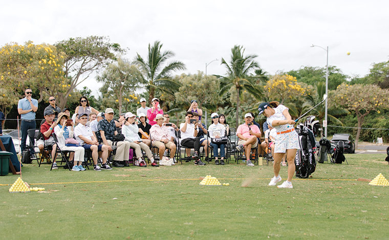 2023年4月12日(水)~15日(土)、ハワイのオアフ島ホアカレイ・カントリー・クラブにて開催されたLPGA全米女子ゴルフツアー・ロッテ選手権2023の観戦ツアーを1日30名様限定で行いました。参加されたメンバー様とゲスト様は、午前7時頃、会場到着後、畑岡奈紗選手をはじめ渋野日向子選手、古江彩佳選手、原英莉花選手ら日本人選手を間近で応援。